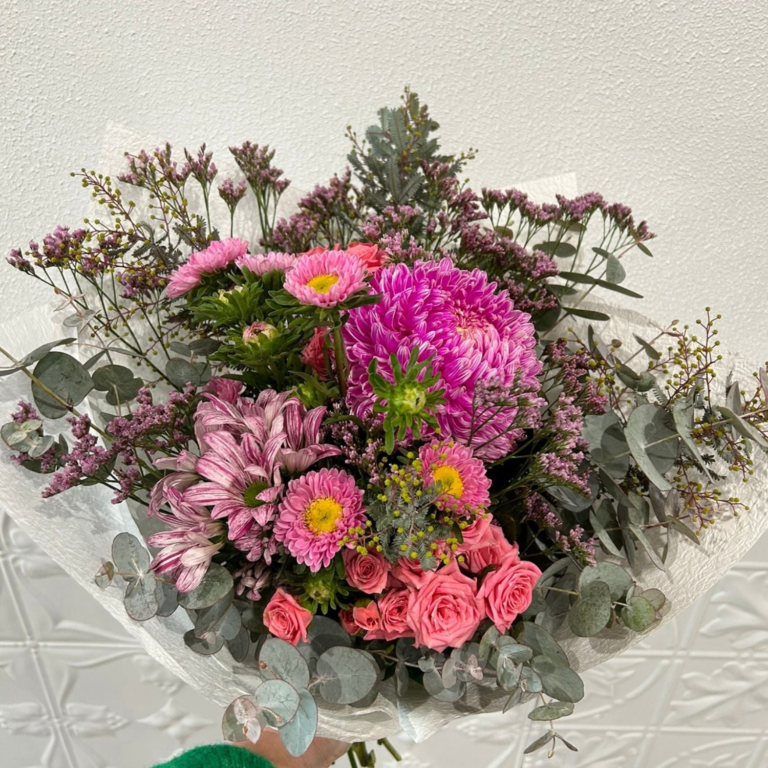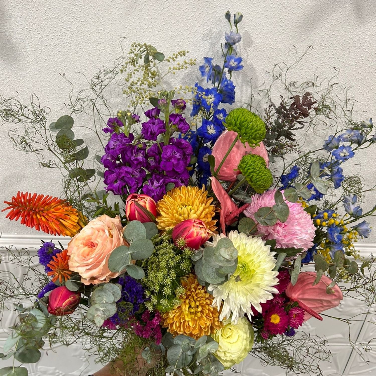 This Florist Choice Bright Seasonal bouquet is perfect for any occasion! Let our expert florists handpick the freshest, most vibrant flowers to create a stunning bouquet that will bring joy to your loved ones. Say it with flowers and make someone's day brighter with this beautiful and unique bouquet.